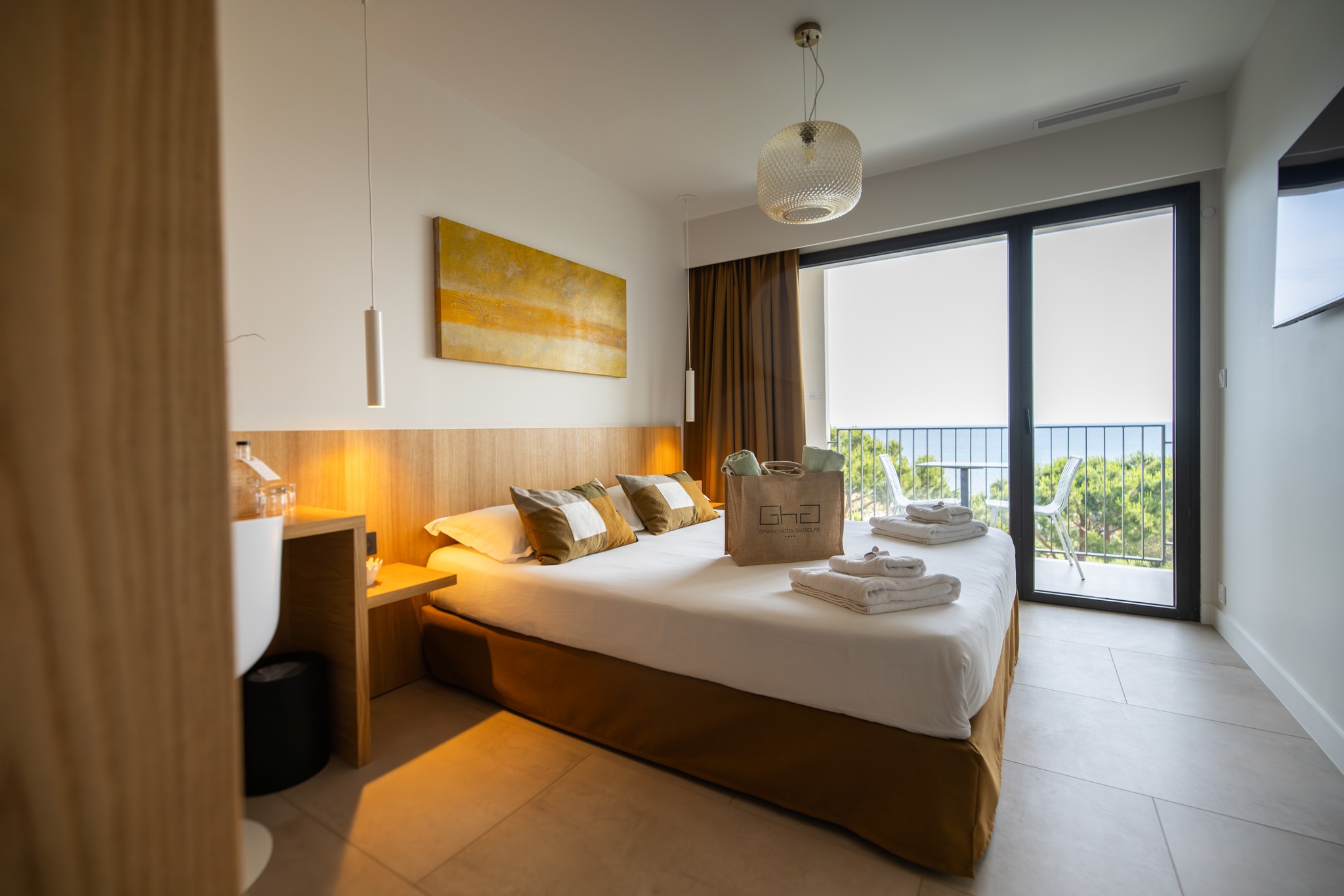 L'hôtel dispose de chambres et suites élégantes offrant une vue imprenable sur la Méditerranée. Chaque espace a été pensé pour allier confort moderne et authenticité méditerranéenne, créant une atmosphère propice à la détente et au dépaysement.