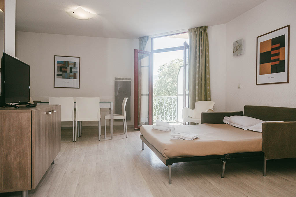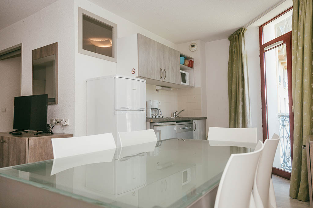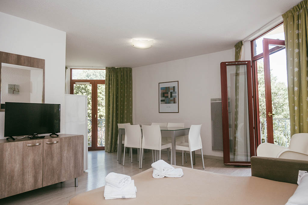 La résidence propose une gamme variée de logements entièrement équipés, du studio pour deux personnes à l'appartement trois pièces pouvant accueillir jusqu'à six personnes. Chaque hébergement dispose d'une cuisine fonctionnelle avec tous les équipements nécessaires, d'une télévision et d'un espace de vie agréable. L'établissement met également à disposition plusieurs logements adaptés aux personnes à mobilité réduite et reste ouvert toute l'année pour accueillir curistes et vacanciers.